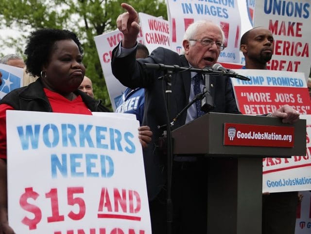 Sanders has committed to supporting a federal minimum wage of $15 per hour — despite evidence from the non-partisan Congressional Budget Office (CBO) that it would lead to massive job losses. (As the New York Times noted last month, the CBO found that a $15 per hour minimum wage — which the Democrat-run House of Representatives will vote on soon — “would lift 1.3 million people out of poverty but also put an estimated 1.3 million Americans out of work.”)