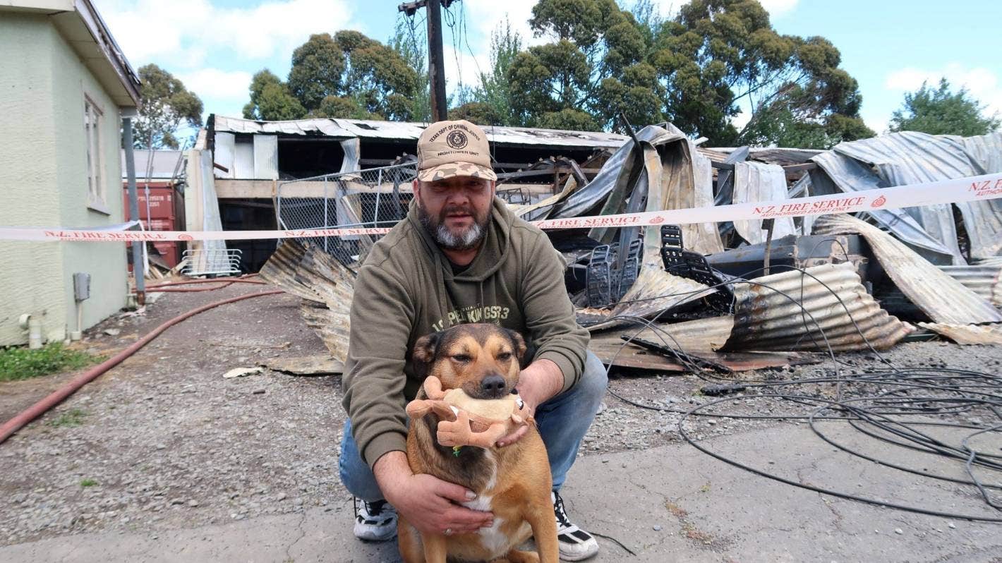 Kurt Stewart is hailing former “gang dog” Missy a hero for raising the alarm when a large blaze erupted in a building just metres from where he lives.