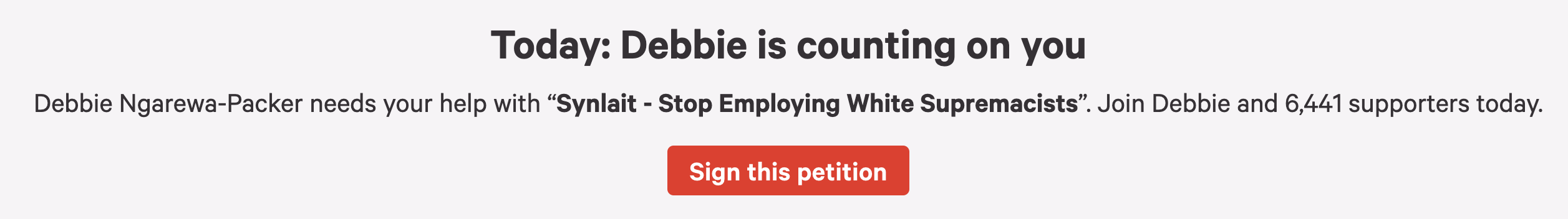 UPDATE: The petition was started by Tina Ngata and Anna McAllister. We in error thought that it was started by Debbie Ngarewa-Paker because our link to the petition had the following on it.
