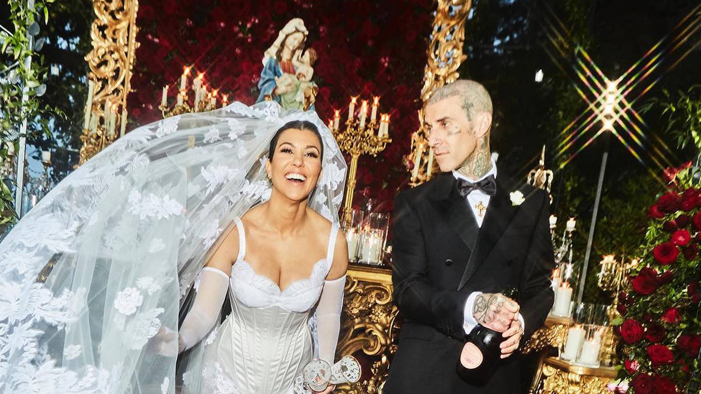 Kardashian later added another photo of the two smiling and facing the guests moments later, with the text, “Introducing Mr. and Mrs. Barker.”