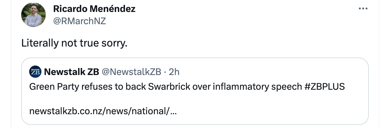 The Green Party has refused to back its MP, Chlöe Swarbrick over her inflammatory speech delivered on the weekend. Just as the party refused to back its co-leader Marama Davidson over her claims made in an election debate last month that the IDF should be designated a terrorist… https://t.co/LtHNw121c6