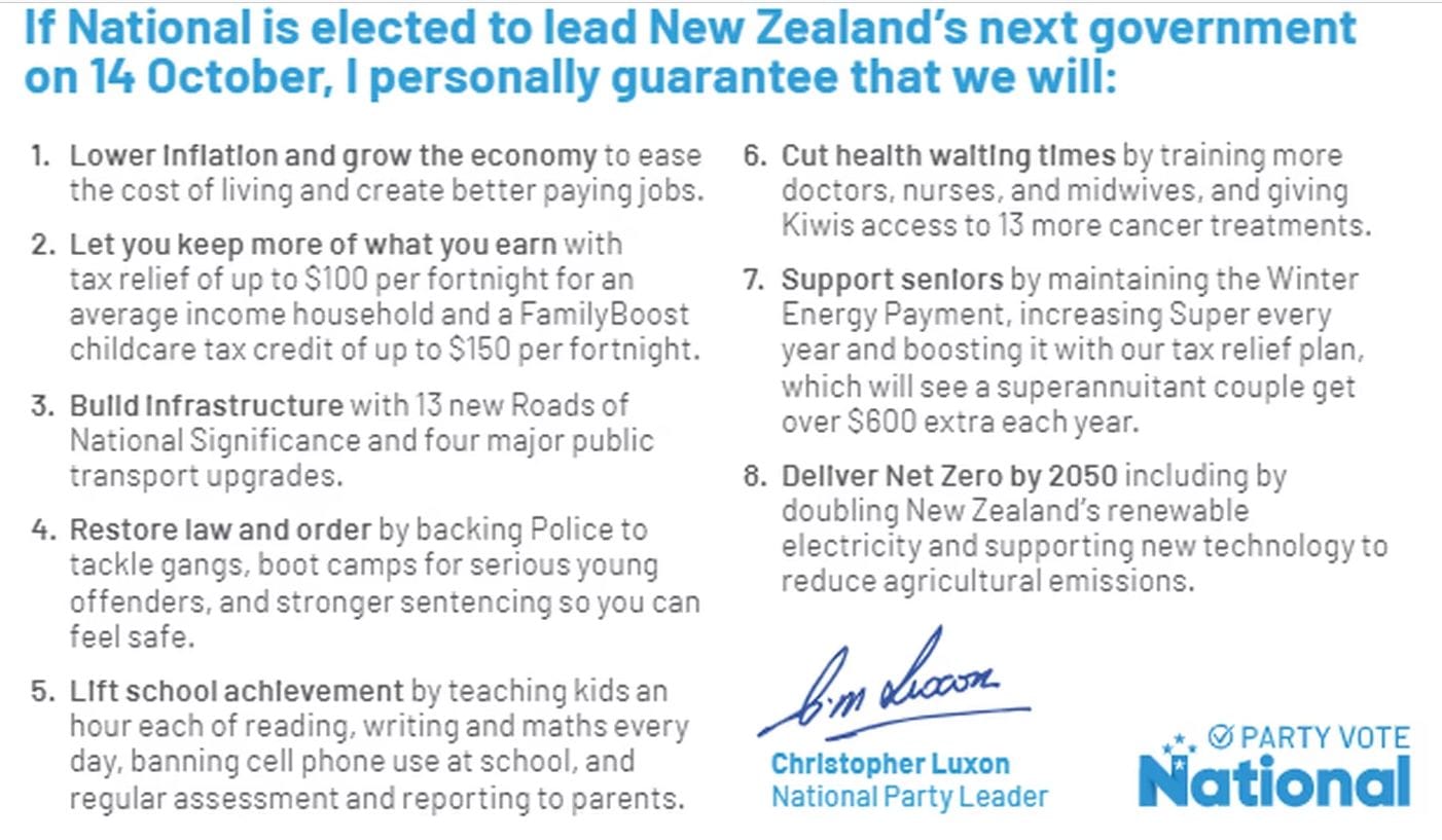 National launched its campaign yesterday, with a pledge card listing commitments including inflation, education, law and order, healthcare and Net Zero by 2050.