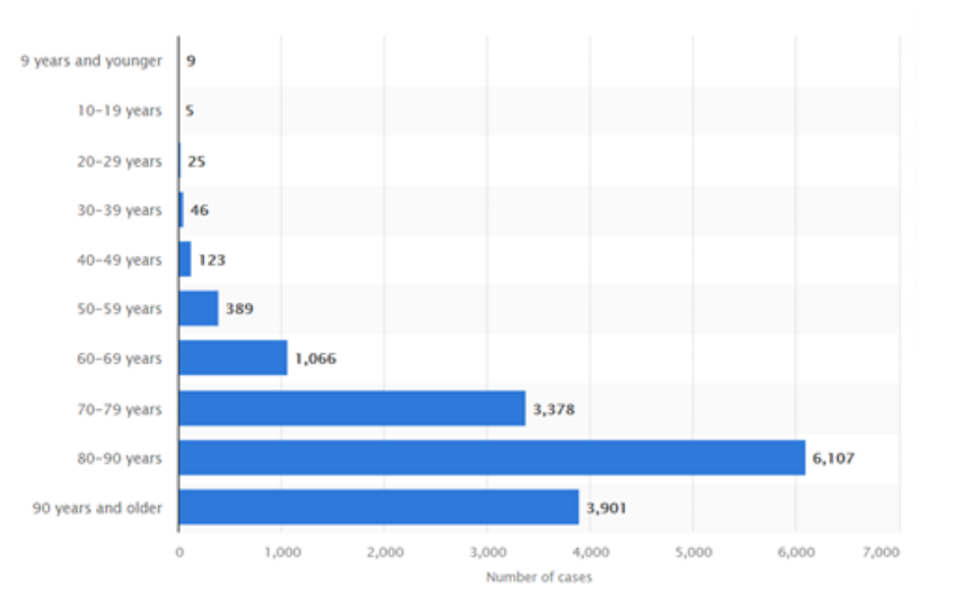 Figure. Deaths with covid-19 in Sweden, by age at November 3, 2021.
