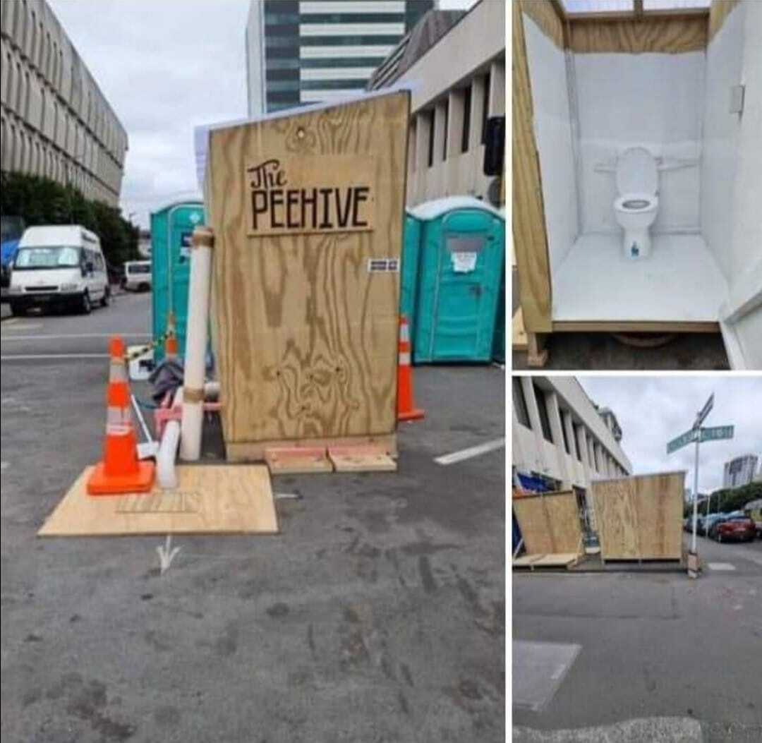 Protesters have built two fully functioning toilets at the corner of Hill St and Molesworth St which Wellington City Council has now confirmed are flushing into the city’s wastewater sewer network.