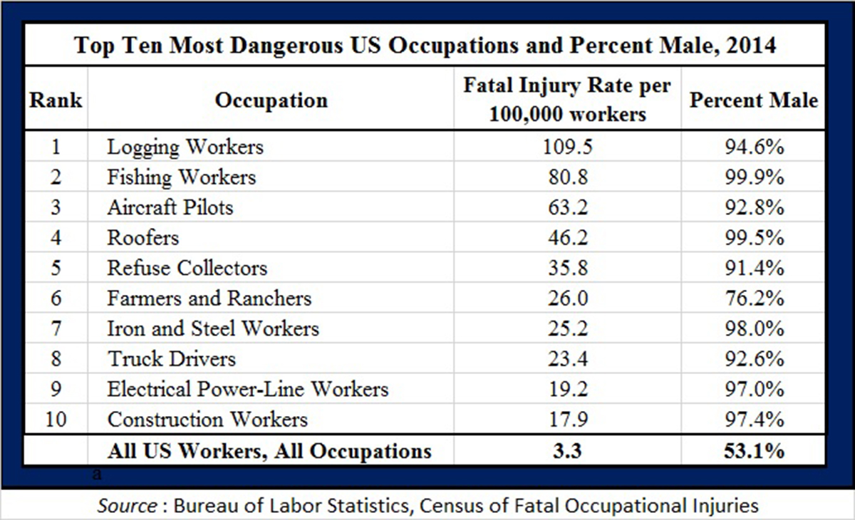 He notes that official government data show that men suffer almost all of the workplace fatalities that take place in a given year.