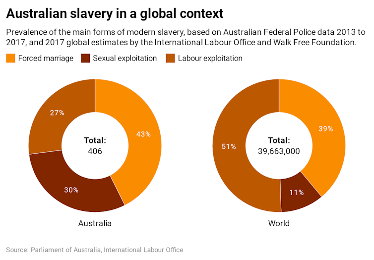 Relatively speaking, modern slavery is rare in Australia. Perhaps a few thousand people fit the strict definition, compared with about 40 million globally.