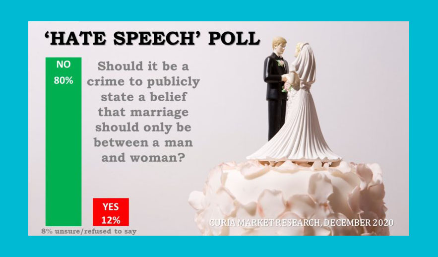 Read the full poll here. Both issues covered in the polls on this page have been included in aspects of ‘hate speech’ laws or proposals in other countries, including Scotland, Norway, Canada, UK, and Tasmania state.17