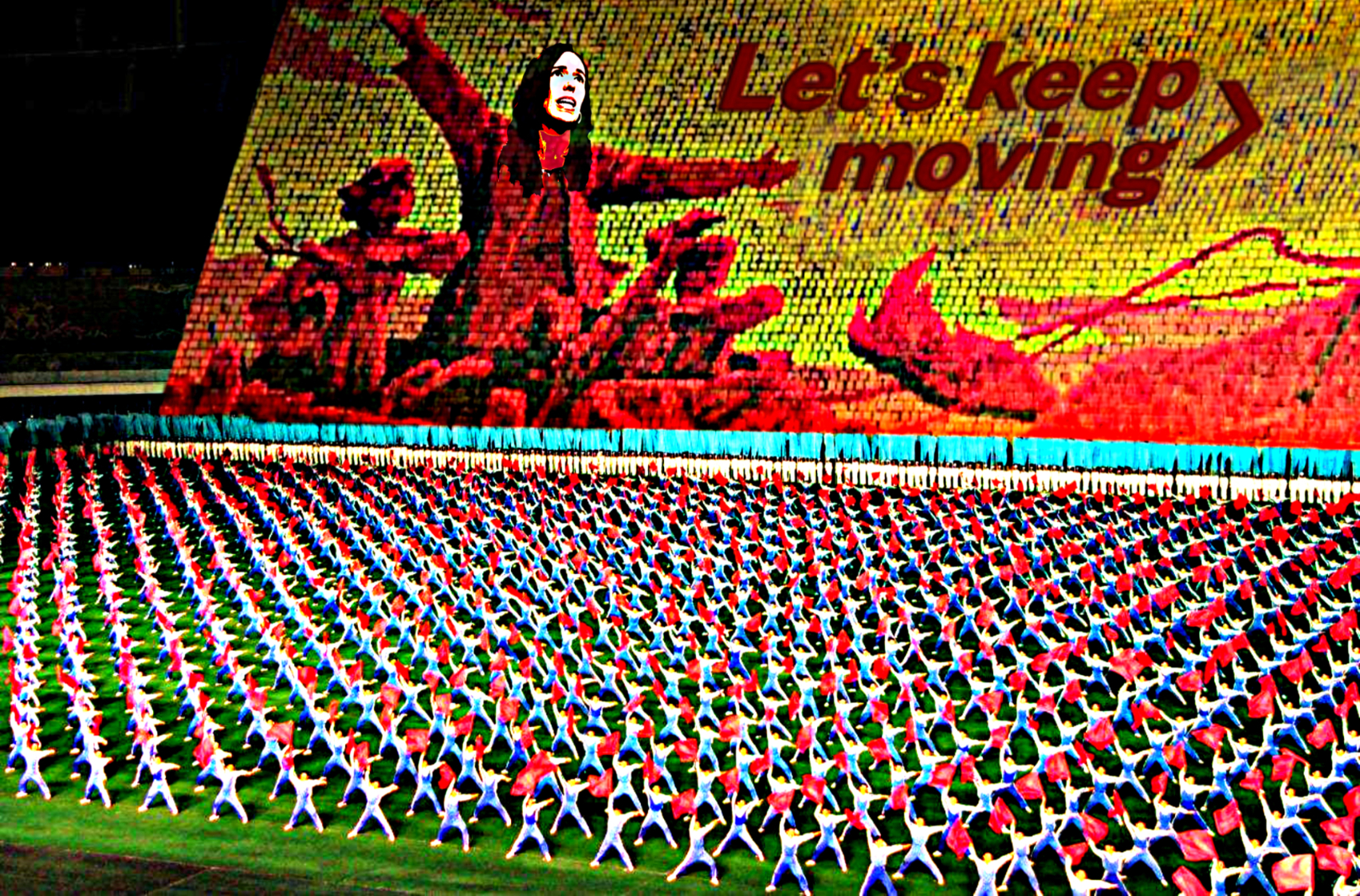 “My team of 5 million will, without exception, focus on an all-inclusive one-team-game invented by my good friend, Kim Jong Un, called the Mass-Games or ‘10,000 pixels’ – a synchronised performance done by 100,000 plus people in stadiums.