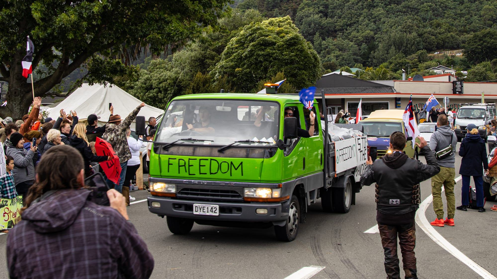 Charlie Robson-Burrell from Nelson, a 17-year-old photographer took some photos at the Convoy 2022 NZ Freedom rally that took place yesterday. The photos and drone footage are of the Convoy arriving in Picton on 7 February.