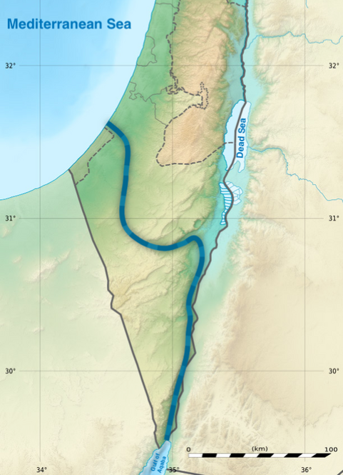 Diagram of the original proposed path of the Ben Gurion Canal.