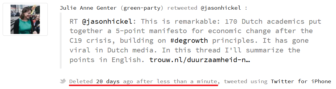 Her re-tweet leads to a European academic angst-fest blaming neo-liberal economic policy, better described as capitalism-lite, as, among other things, responsible for the COVID epidemic and promising better outcomes based on ‘de-growth’, a favourite of the ivory-tower gaggle and greenies, the very twin-set at the heart of our coalition government’s ideological thinking.