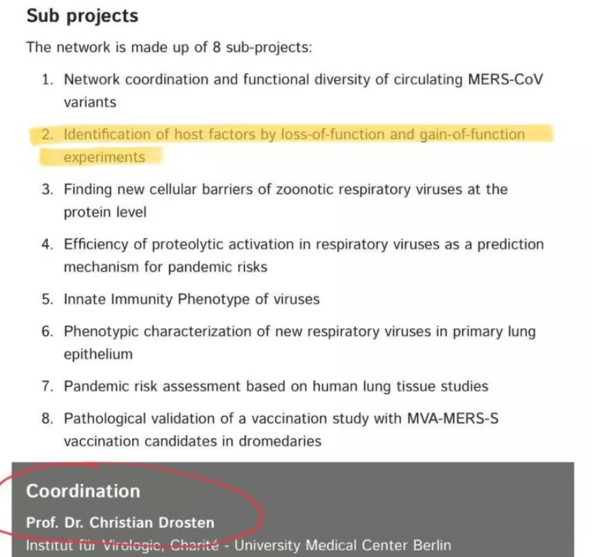 We know that the German Government funds gain-of-function experiments, because none other than Christian Drosten was coordinator of a multi-part publicly-funded RAPID project which includes them, as can be seen below. Stefan Pöhlmann was, incidentally, Director of one of the RAPID sub-projects.