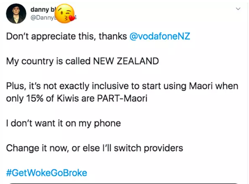 We have all seen how the Big Tech corporations have started piling on to businesses that support conservative views. The fate of Parler is a very good example, but it is easy to just dismiss all that because it is America and ‘Orange Man Bad’. It is a different story, however, when it starts happening in your own backyard. We all remember when Air New Zealand baited a woman who did not want to be addressed in Maori, eventually seeing her being called a ‘racist’ online. This was unnecessary from Air New Zealand, who need to show cultural sensitivity to non-Maori speakers as well… not that this is ever likely to happen. More recently, Vodafone, Spark and 2 Degrees all ganged up on customers who were frustrated with Maori Language Week and objected to Vodafone unofficially renaming itself as ‘Vodafone Aotearoa’. Remember this?