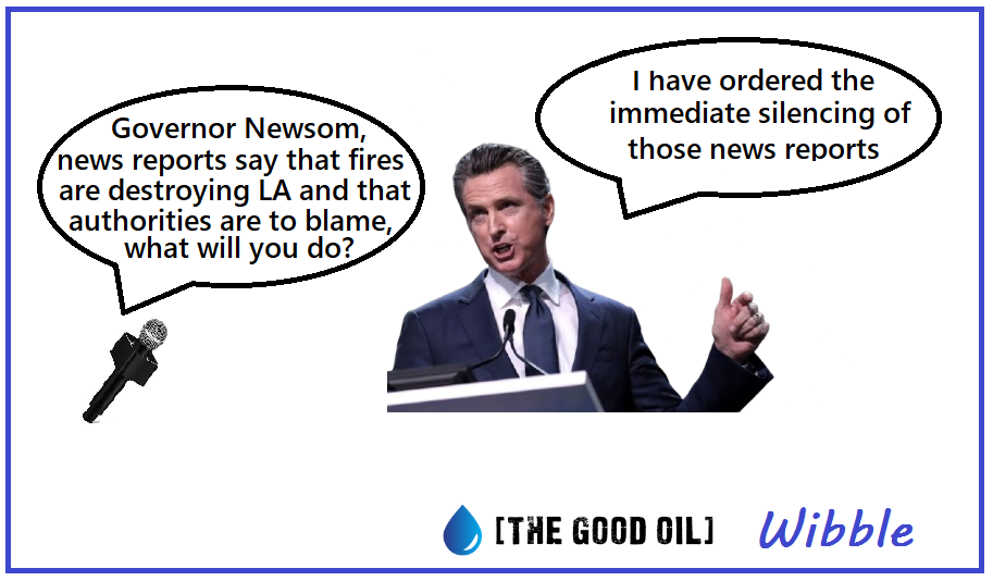 Governor Newsom. Photoshop credit: Wibble. The Good Oil.