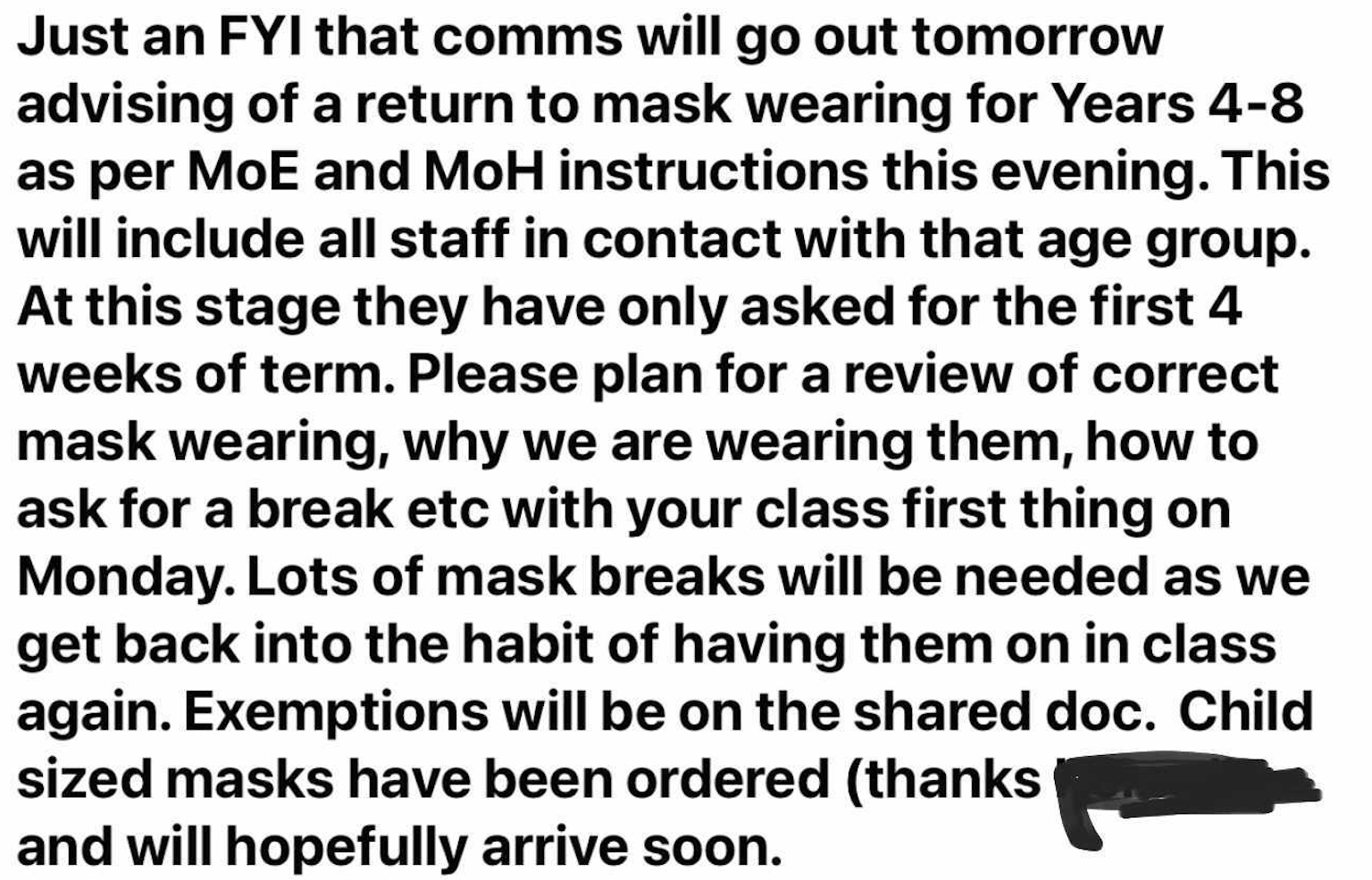 Who will be held responsible for any harm caused to children due to long-term exposure to elevated carbon dioxide levels? The “medical grade” masks are mostly for show, and it seems that the government is aware of this, as every time there is a positive case identified in a class group the whole class is required to isolate. If the masks worked, there would be no need to isolate. There may be some minor benefit in some situations, but I sincerely doubt that there is any benefit at all for those spending an entire day in the same room. The only thing the children would be protected from is likely just much-needed oxygen. This is just giving a false sense of security and push fear onto children and their families.