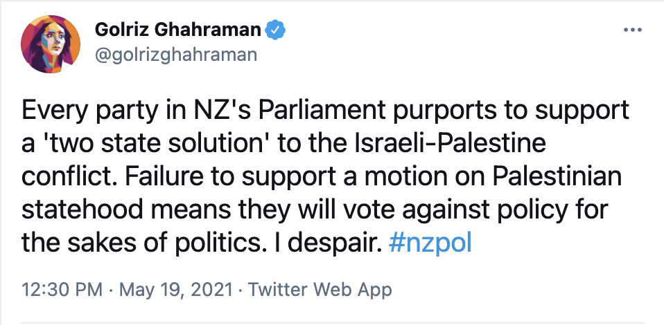 Green list MP Golriz Ghahraman has managed to offend even more people with her latest round of Hamas Hugging.
