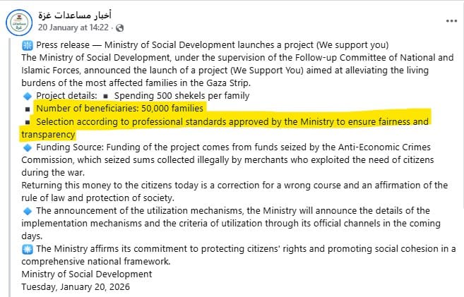 Though not stated explicitly in the statement, it was widely understood in Gaza that the reference to “Al-Aqsa Flood” – Hamas’s term for its October 7, 2023 onslaught – meant the lion’s share of aid would go to the widows of Hamas members, who have been provided their own designated tent camps.