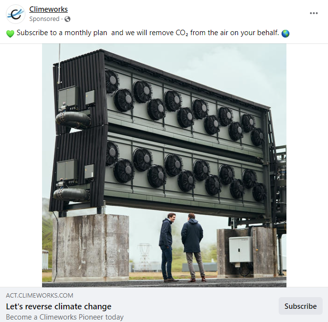As more cash flows in, more suckers like the big beast above can be deployed to suck the evil CO2 from the air and bury it safely underground.