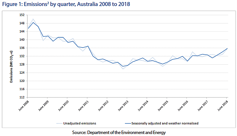 In fact, Australia’s GDP dipped sharply – harder than even during the GFC – immediately the carbon tax was reduced in 20012. It wasn’t until the carbon tax was repealed in 2014 that growth returned. Emissions rose slightly during the carbon tax period.