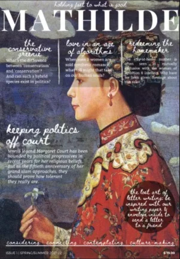 The first issue (Spring/Summer 2021-22) features an interview with Australian tennis legend Margaret Court – now a dark legend in the eyes of progressives for her public defence of traditional marriage. How significant is her story in terms of Mathilde’s mission?