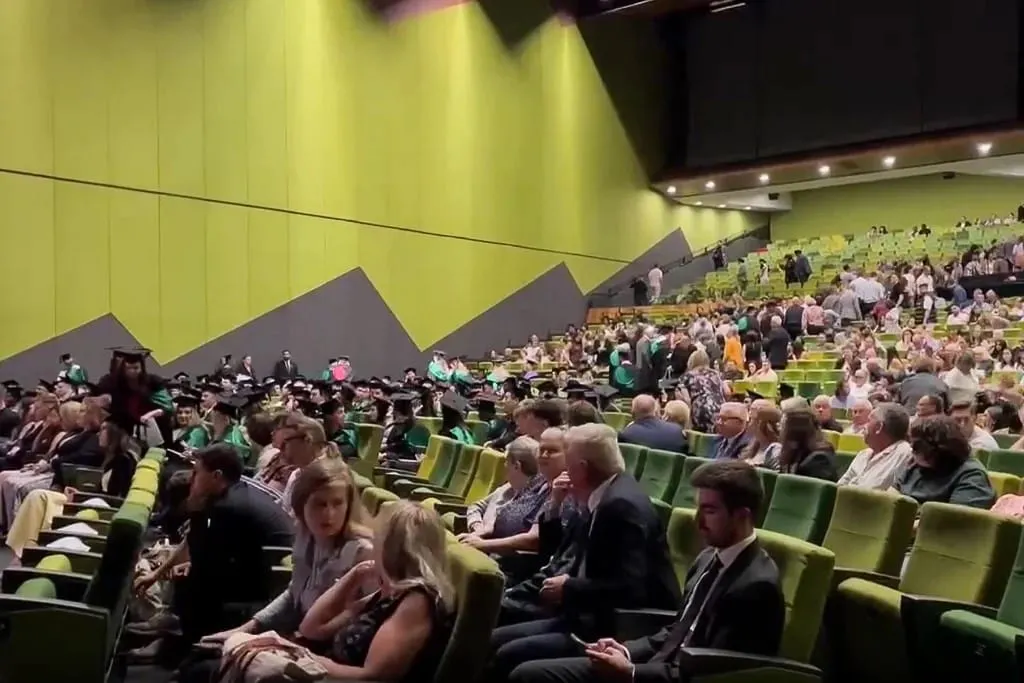 Graduating students staged a mass walkout during a university speech by former union boss Joe de Bruyn after he starting railing against abortion and IVF.