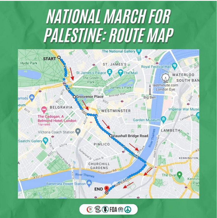There has been a huge political stoush about whether to ban the planned march from Hyde Park to the American embassy in Nine Elms, south of the river. The Home Secretary wanted it banned but the Metropolitan Police Commissioner said that he did not have legal grounds to cancel it. He argued that he needed intelligence that there would likely be a breach of the peace in order to cancel. The Home Secretary Suella Braverman wants it cancelled and is now in a freedom of speech row with elements of the Conservative party.