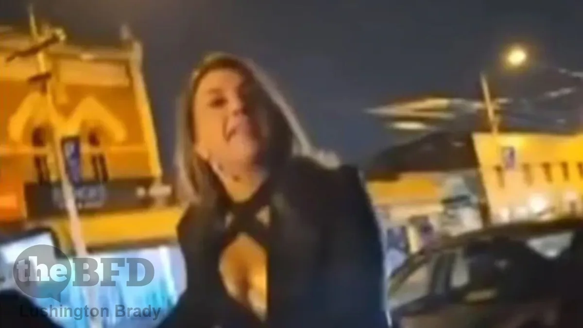She was shown shouting at men standing outside before being dragged away by a companion,