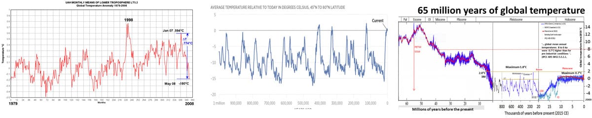 Similarly, looking at global climate reconstructions over a period of 100 years, one million or 65 million years also gives a very different picture of what may or may not be ‘normal’ or ‘unprecedented’.