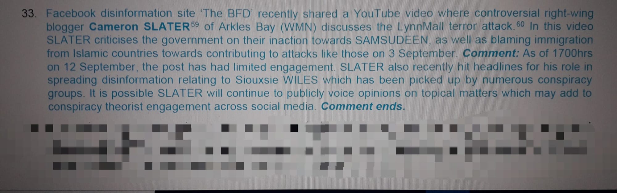 What is worse is that the cover-up extended deeply into the Police ranks as well. This is an extract from the weekly Police Intelligence report which specifically names the author and The BFD: