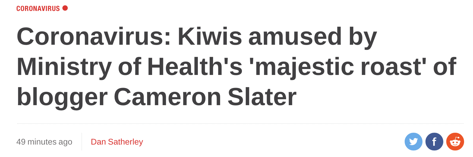 Newshub, the news channel that reliably attacks the messenger of any bearer of bad news for the Government or shills the Government’s side of any story also ran a story, not about the demonstrable lies contained in the text messages, but about how the Ministry of Health and Ashley Bloomfield, in particular, had cast shade at me and our website. Such is the increasingly puerile and toxic nature of that sham news organisation.