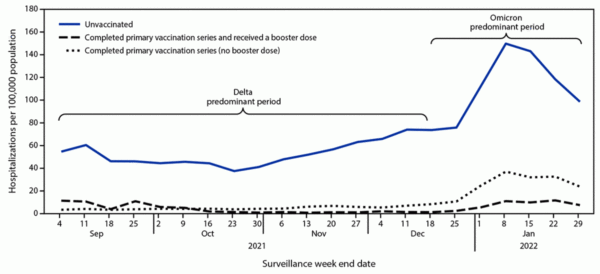 Here, hospitalization data was plotted against 1) unvaccinated people, 2) vaccinated without a booster, 3) vaccinated with a booster. There is no information about people who had recovered from COVID-19. In other words, information on natural immunity is censored.
