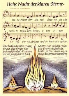 Propagandists tirelessly promoted numerous Nazified Christmas songs, which replaced Christian themes with the regime’s racial ideologies. Exalted Night of the Clear Stars, the most famous Nazi carol, was reprinted in Nazi songbooks, broadcast in radio programs, performed at countless public celebrations – and sung at home.