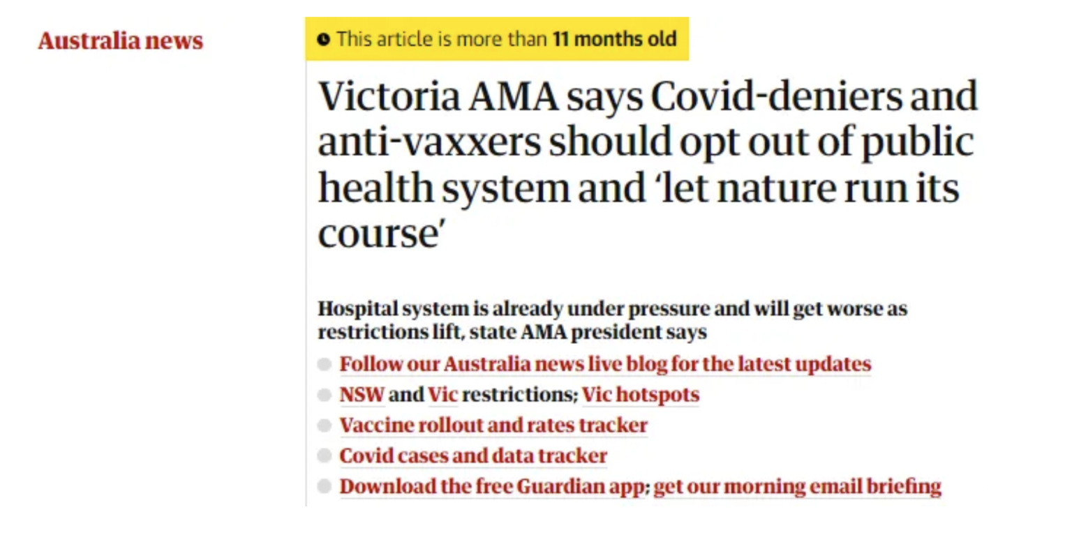 In Victoria, Australia – where lockdowns were longer than in perhaps any other city in the world – one politician proposed cutting the unvaccinated out of the national health system entirely.
