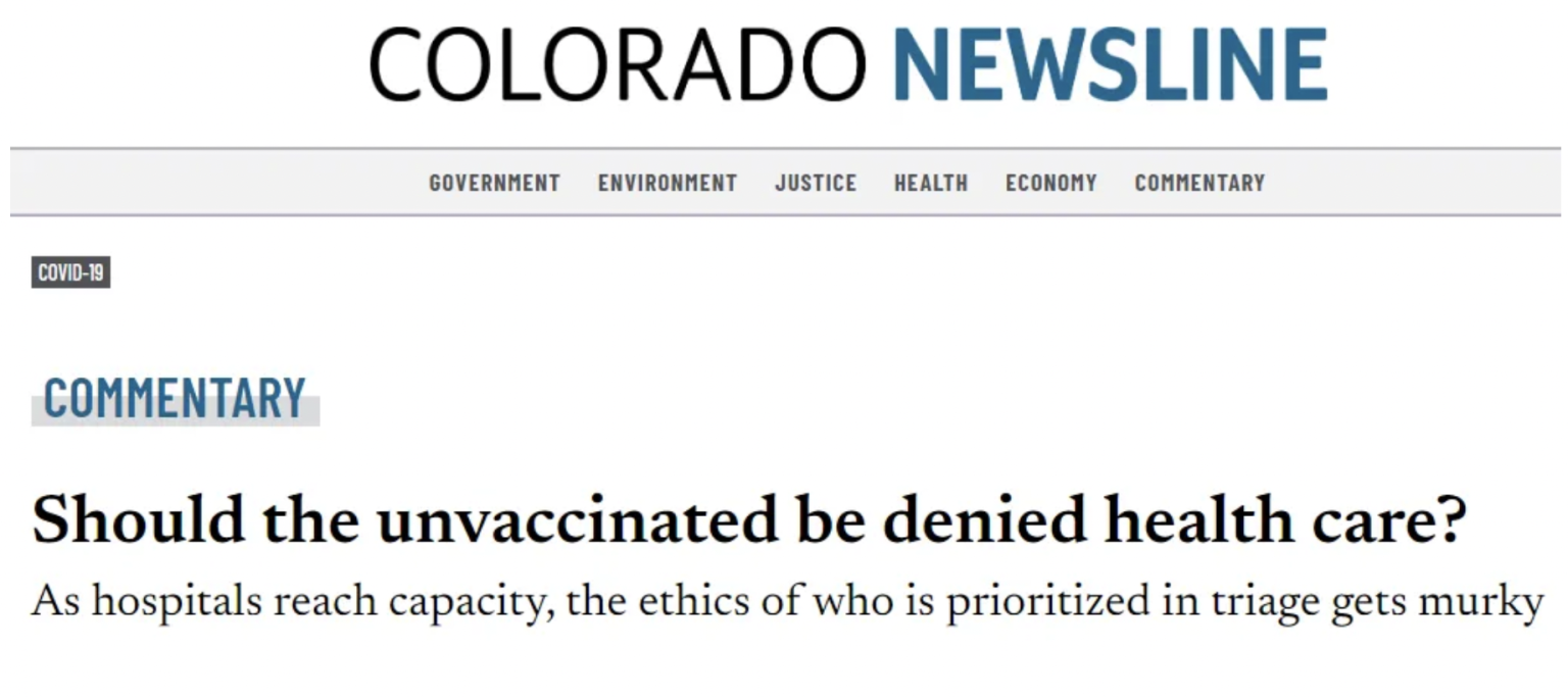 Shockingly, this appalling idea of triaging emergency care based on vaccination status is still being proposed to this day.