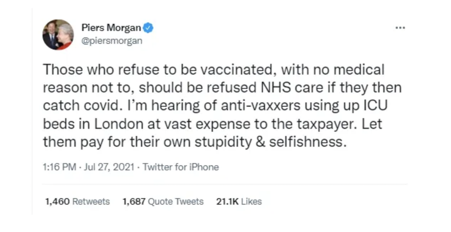 Piers Morgan agreed that the unvaccinated should be denied emergency care.