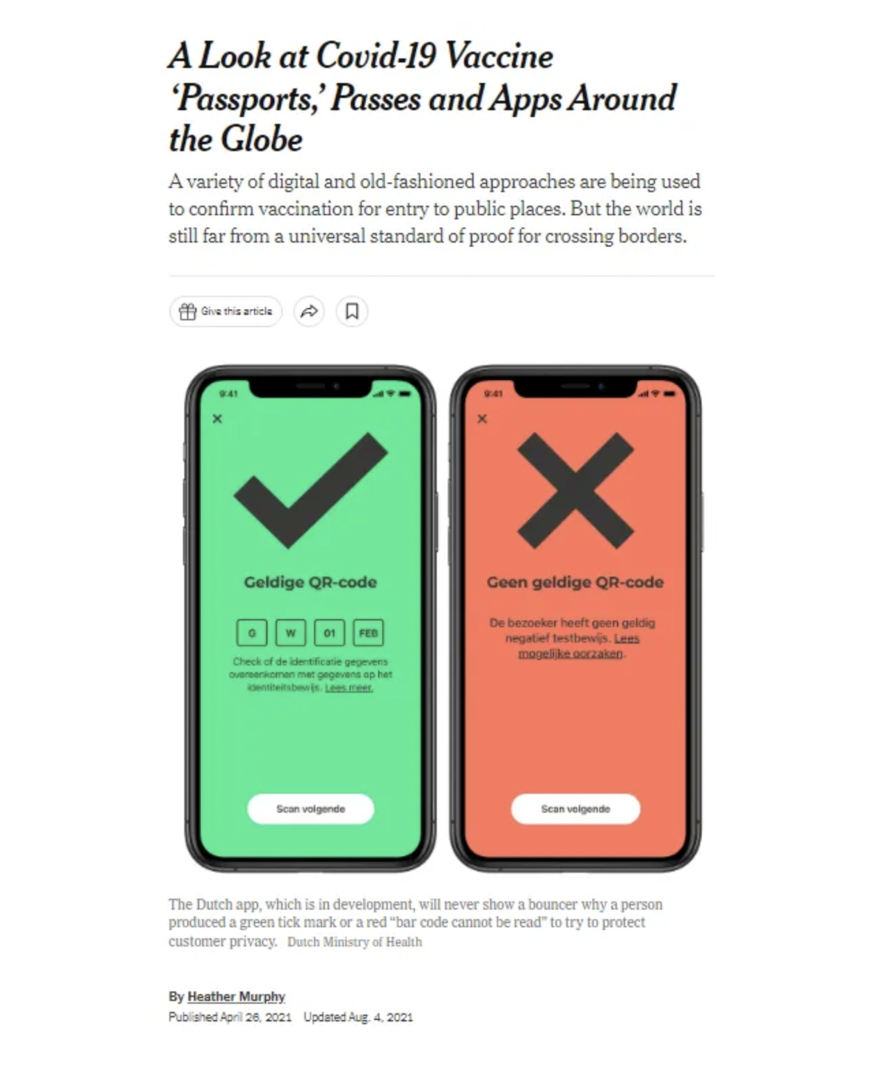 Most countries, cities and states across the Western world introduced vaccine passes that their own citizens had to show in order to partake in daily life. The World Health Organization published an extensive document on implementing a digital vaccine-pass system, including an international vaccine status registry and instructions on how to later revoke someone’s vaccine pass.