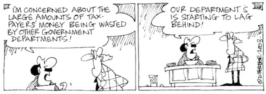 Silo mentality grows into empire building. Council planning departments have expanded regulations, then expanded staff numbers to manage the regulations, then the new staff expand regulations in a cycle that strangles development.