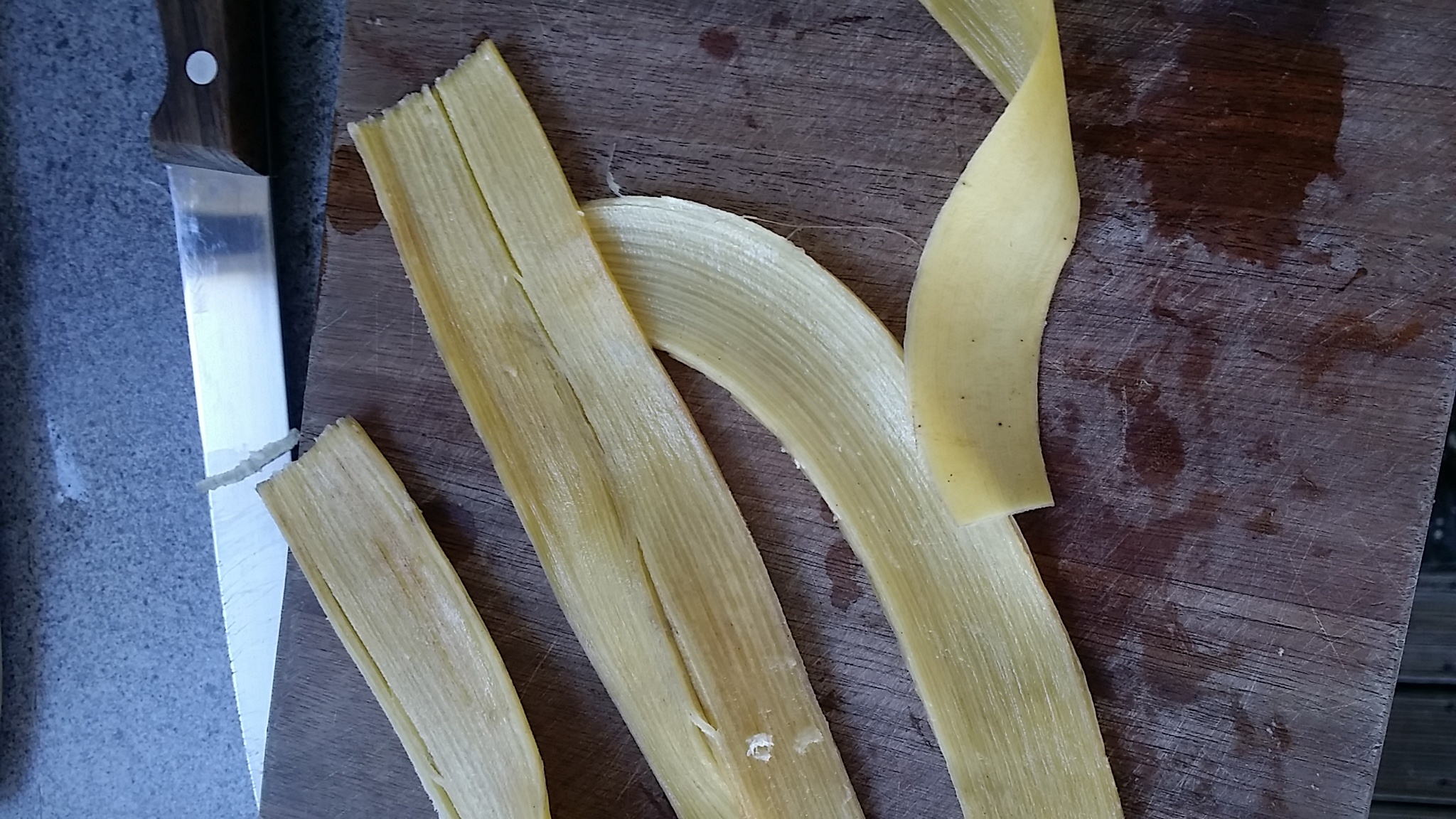 Its kind of stringy?the peel fibres probably not broken down enough in steam. Has a banana flavour(of course)..but bitter. And yes, like cardboard?