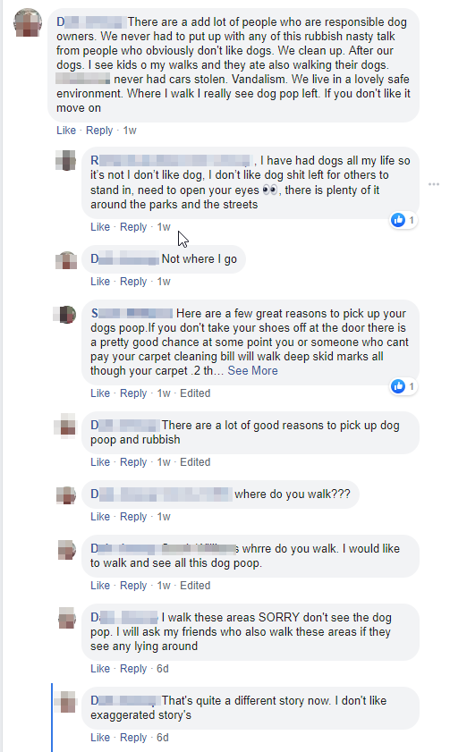 So he was defending his opinion being dog-friendly and stating that there was plenty of poop around.