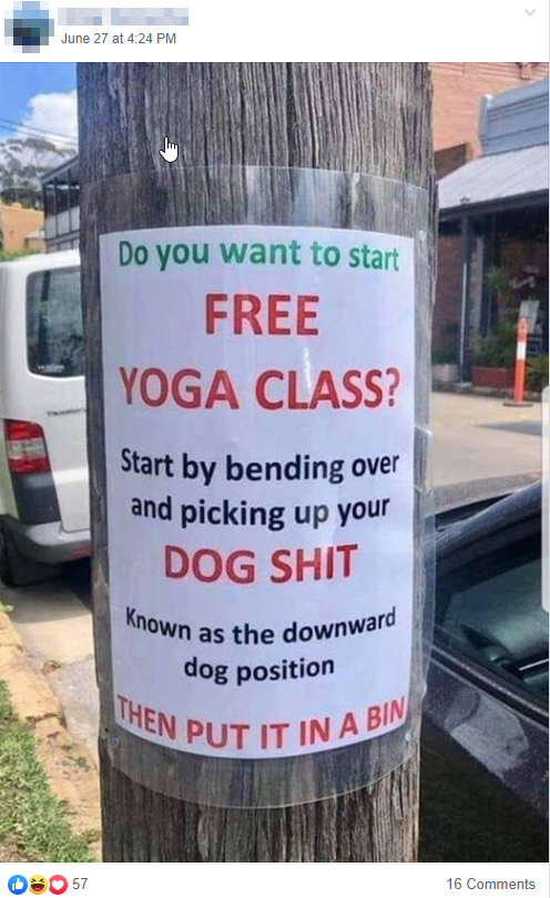 Having wandered into a community FB page one day I saw what I thought was a humorous way to get a certain message across.