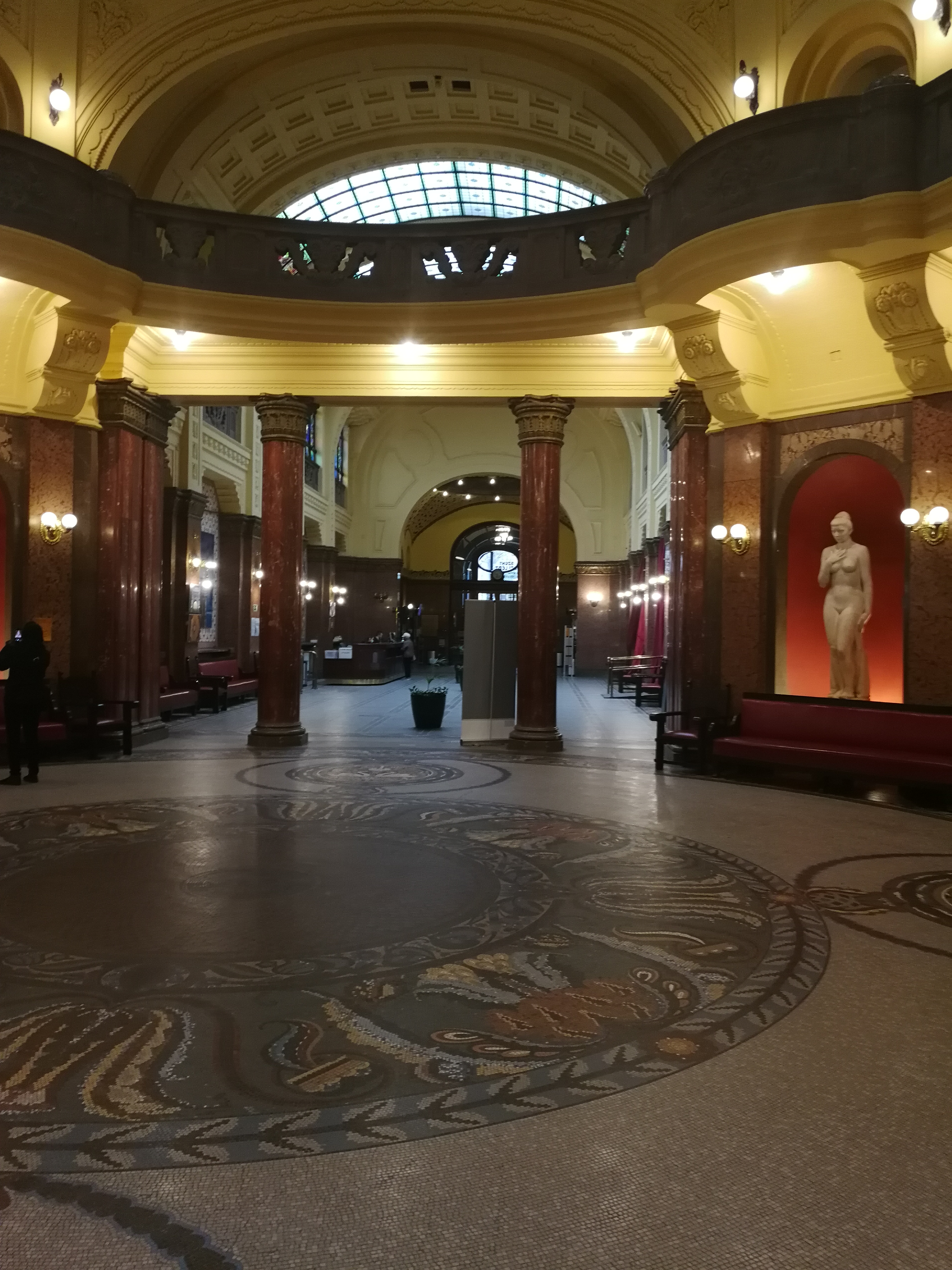 Entrance foyer to Hot mineral baths in Buda next to the Szabadsag bridge spanning the Danube connecting Buda to pest. Photo credit The BFD.