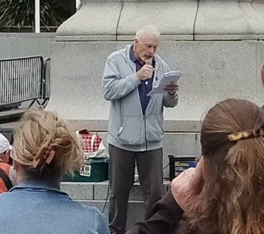 He told the crowd of about one hundred people he has identified clusters of excess deaths he believes are linked to the vaccines.