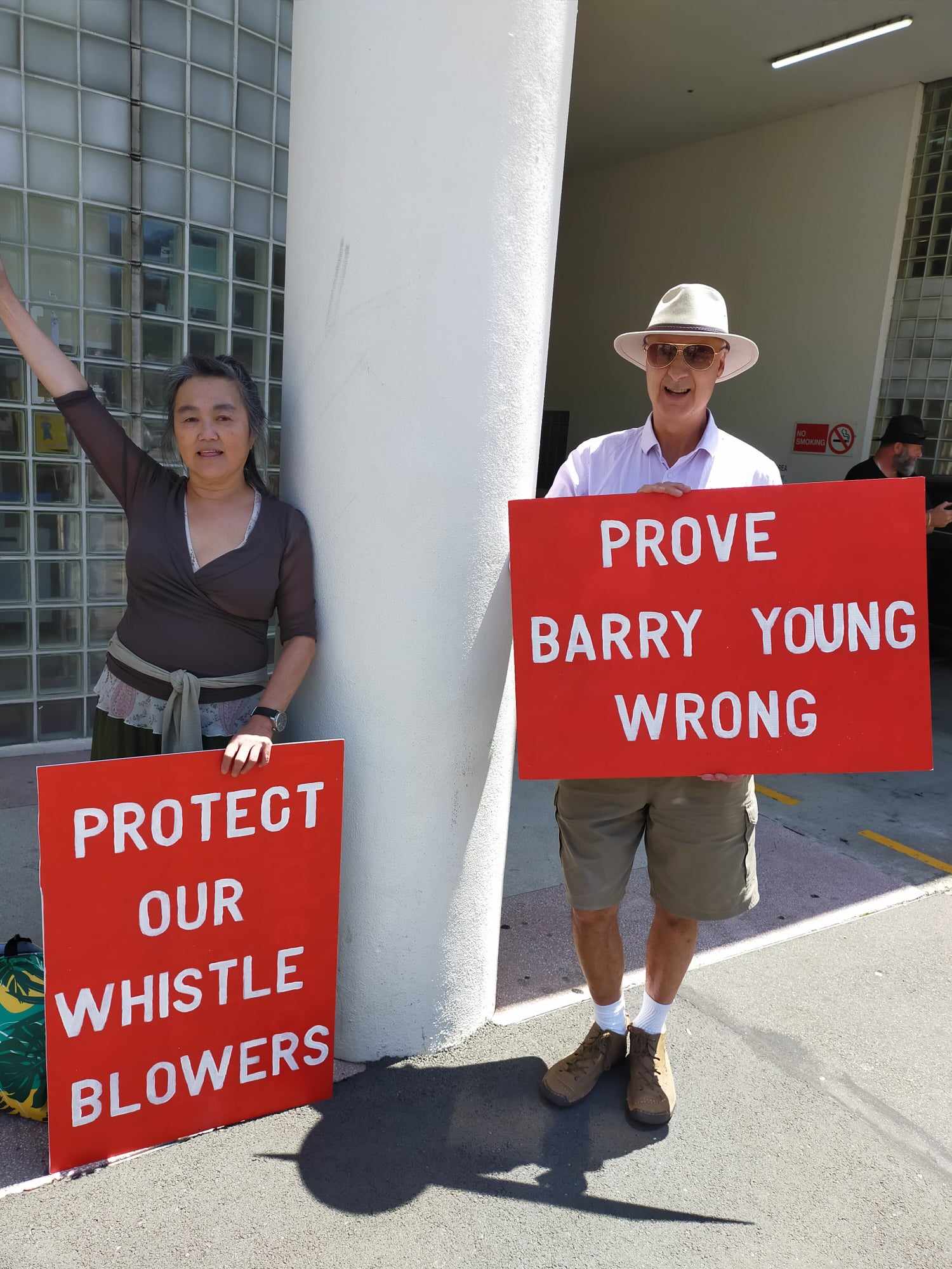 Mr Young elected trial by jury and will next appear in court on February 23. Outside the court, he thanked his large group of supporters, who blew whistles and held signs in support of him.