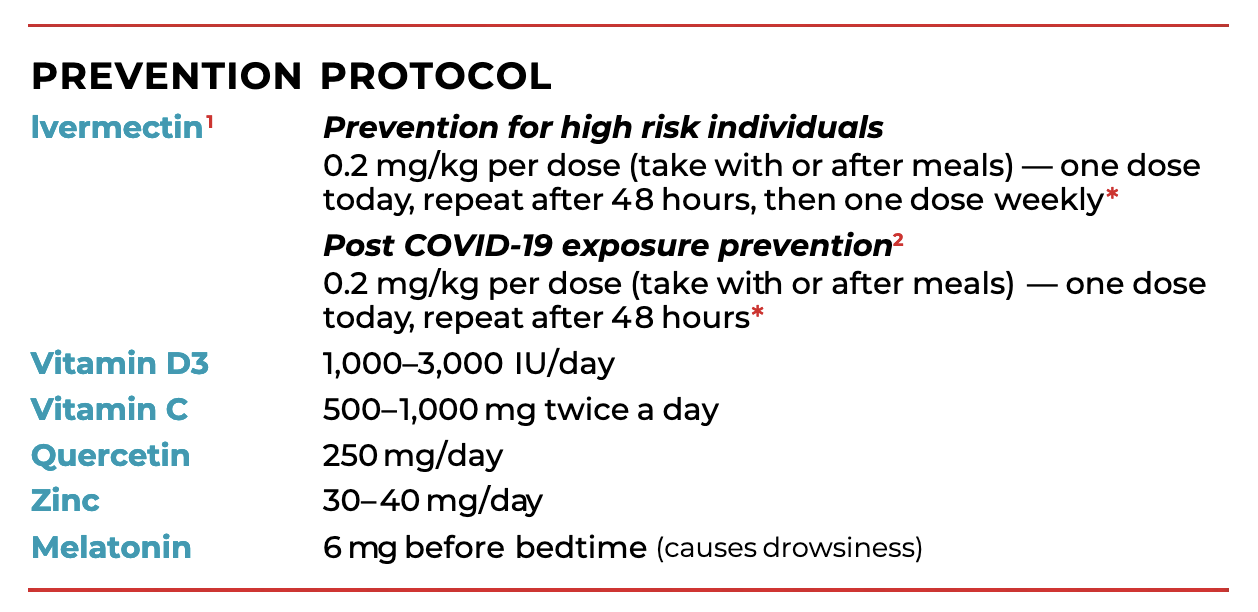 I have attached the Front Line Covid Critical Care Alliance’s treatment protocol using Ivermectin. It gives the dosage based on body weight. Note that the zinc is very important.