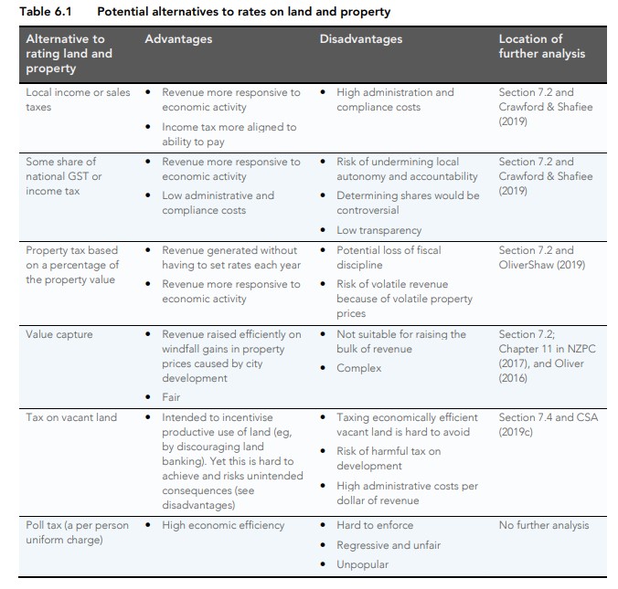Given the modest scope of local government in New Zealand, the benefits of a property-tax-based system, and the absence of a clearly superior alternative, rating land and property should continue as local government’s main taxing power.
