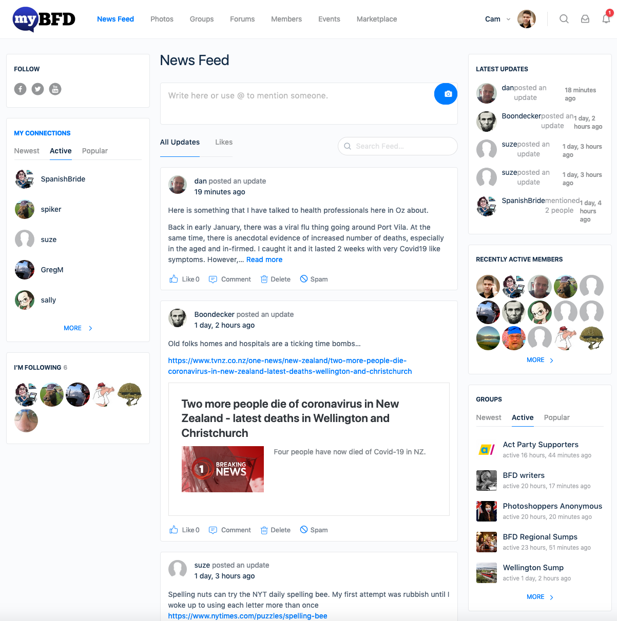 The MyBFD platform allows members to organise themselves into public, private or hidden social areas with separate activity feeds and member listings. Groups have been established for every political party, Regional Sumps, the WOGC and many other interests. Some private member-only groups have also been established for Silver, Gold and Platinum Subscribers. If you can’t find a group to interest you then start one!