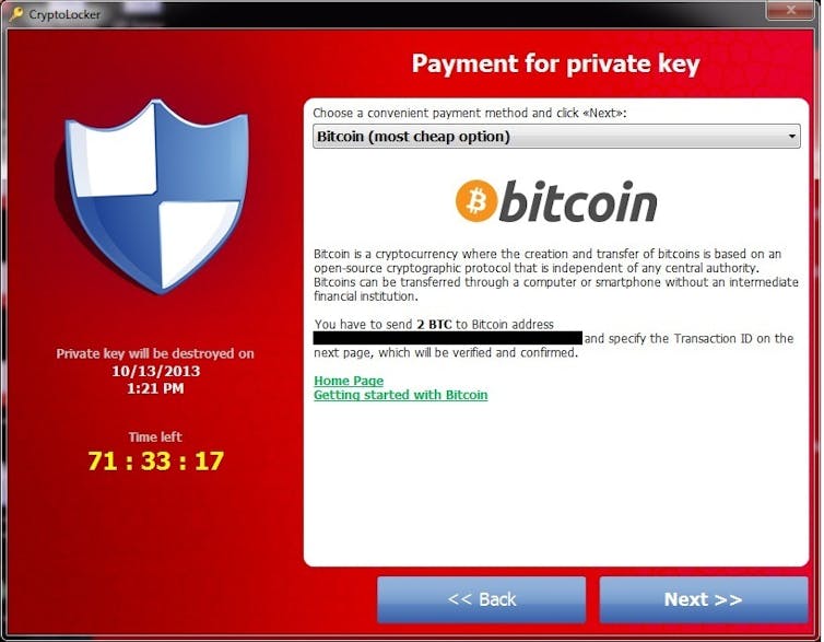 In 2013, CryptoLocker malware rose to global dominance, partly supported by the GameOver Zeus botnet. Cryptolocker encrypted users’ files, sending the unlock key to a server controlled by the criminals with a three-day deadline before the key was destroyed. The network was shut down in 2014, thanks to a major global law enforcement effort called Operation Tovar. It is estimated to have impacted more than 250,000 victims and potentially garnered 42,000 Bitcoin, worth around US$2 billion at today’s valuation.