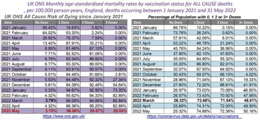 There are other methods to quickly settle any dispute. Figures just released in the UK by the Office of National Statistics (ONS) point in another, but equally tragic direction. ONS data for all-cause mortality includes Covid vaccination status. See for example: