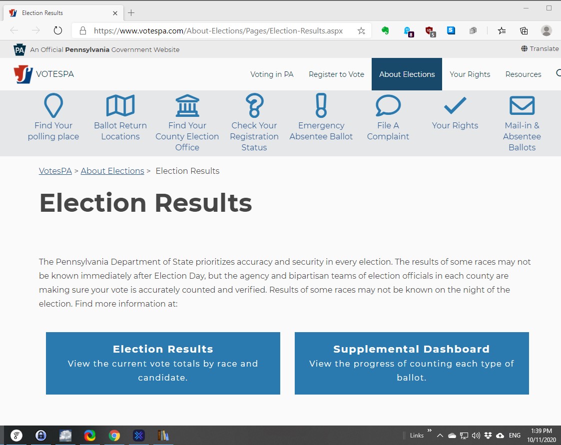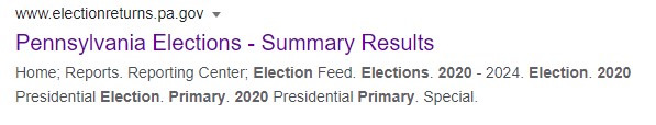 The eyes of the world are on Pennsylvania at present so the factual results, rather than the media calls on the outcome are important. After a search for “pennsylvania voting results 2020” and wading through all the media results one can find an official .pa.gov site.