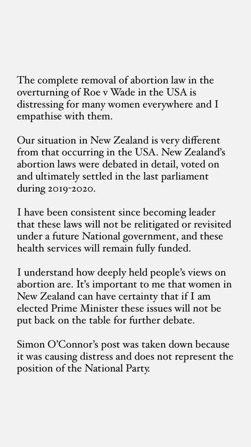But they weren’t. Instead, Christopher Luxon’s position on abortion is far more important, even though he has come out and said that he has no intention of changing the law in this country as it stands.